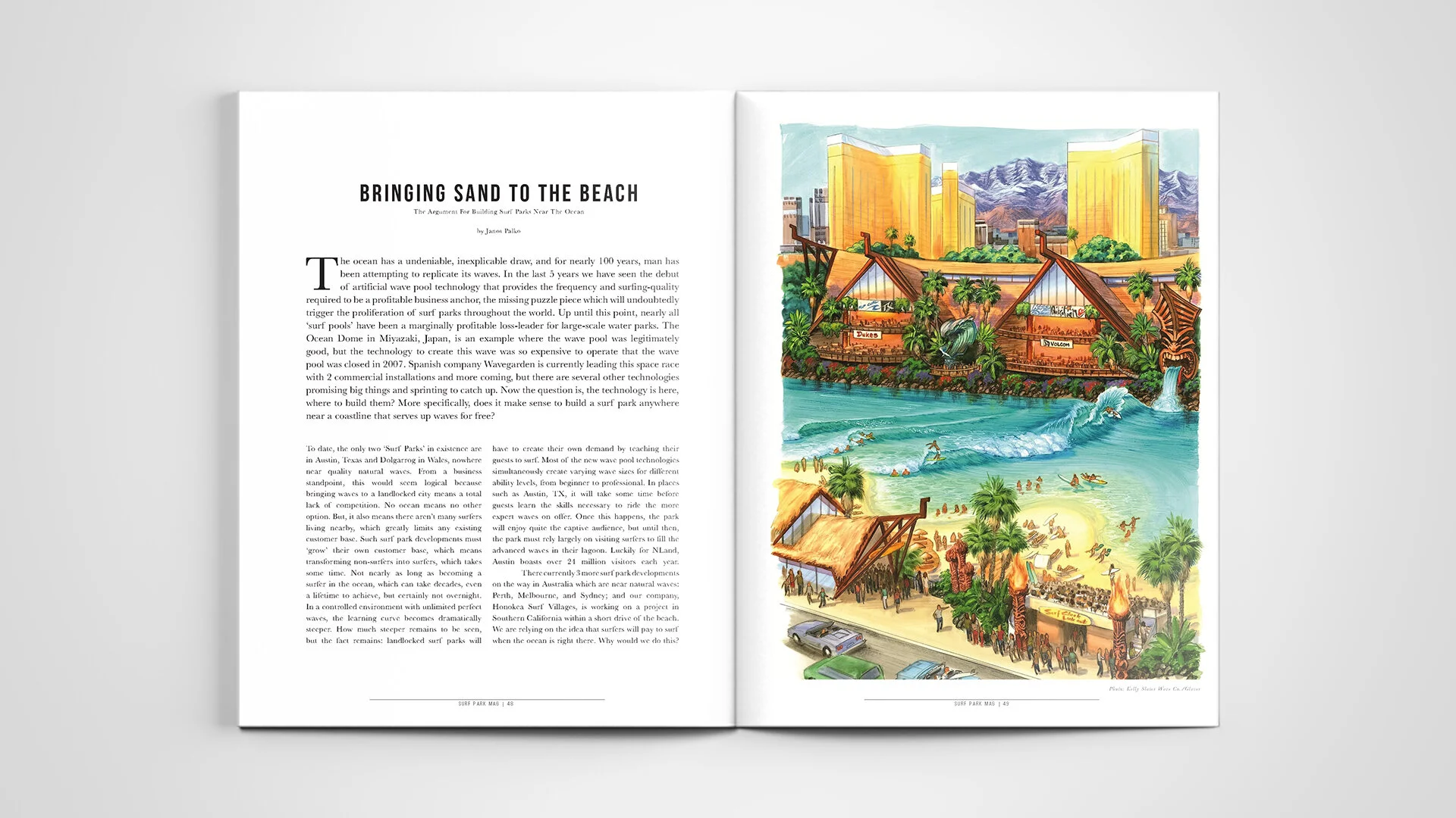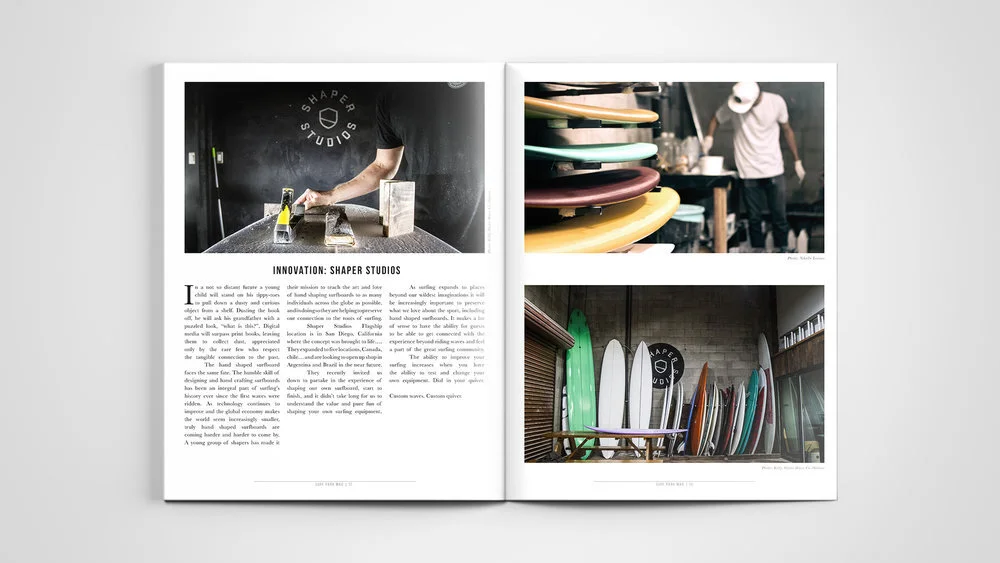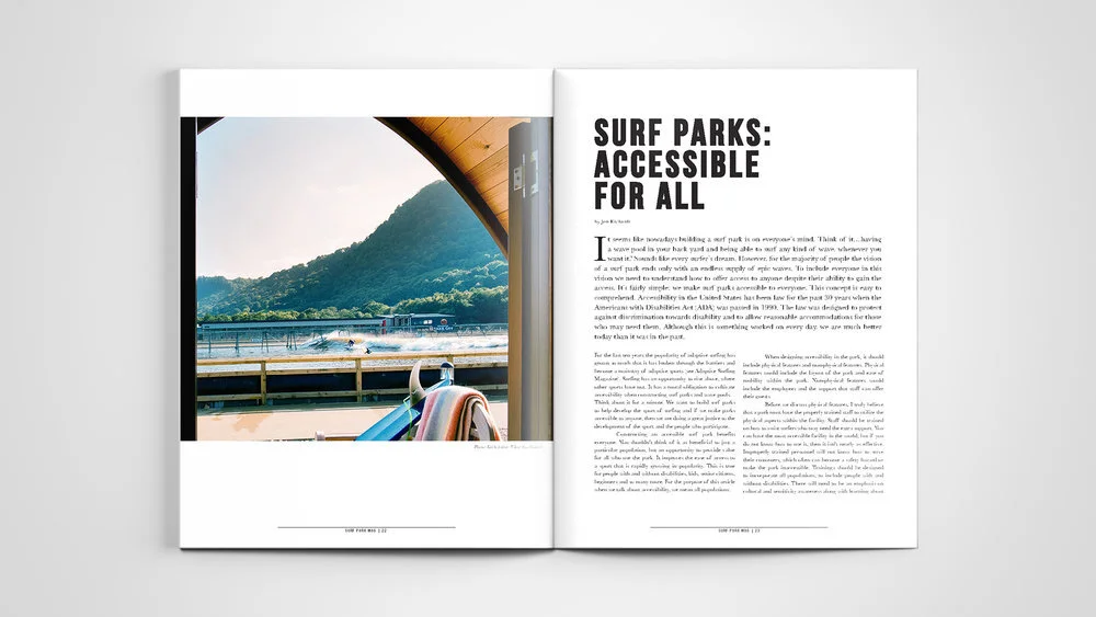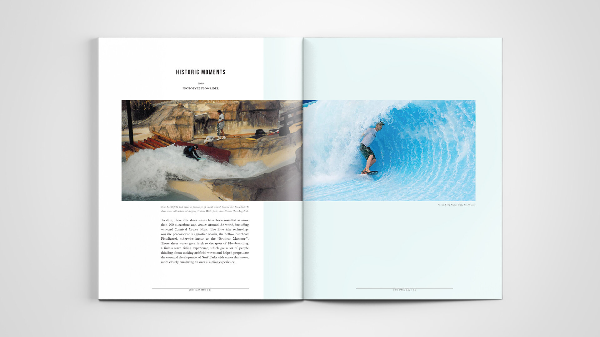 In the early stages of a budding industry Surf Park Magazine acts as the voice of advancing surf technology and developing the culture around the blooming surf park industry. This sub sect of the industry is ever-changing and exponentially improving. We were hired to design the editorial layout and to format a clean sophisticated magazine.